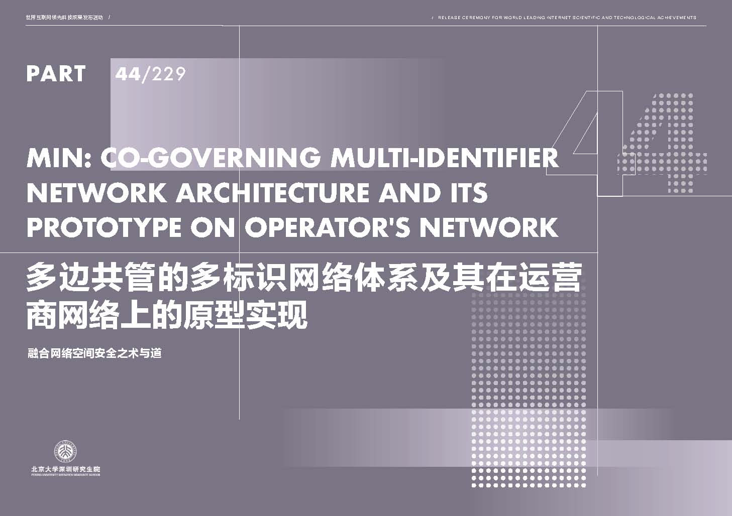 李挥教授课题组提出的多标识网络体系MIN突破目前IP单一标识且中心化管理的困境,以基于投票的联盟链构造网络管理面多标识系统MIS:构建包括身份、内容、北斗地空、IP等多标识平行共存的网络层,让各国共管并获得除IP外的标识空间主权;MIS要求所有用户均真实身份注册;以签名密码技术实现隐私保护和可控可管平衡,使得MIN成为安全和平民主透明的法治空间,而不是IP网络事实上的法外飞地。