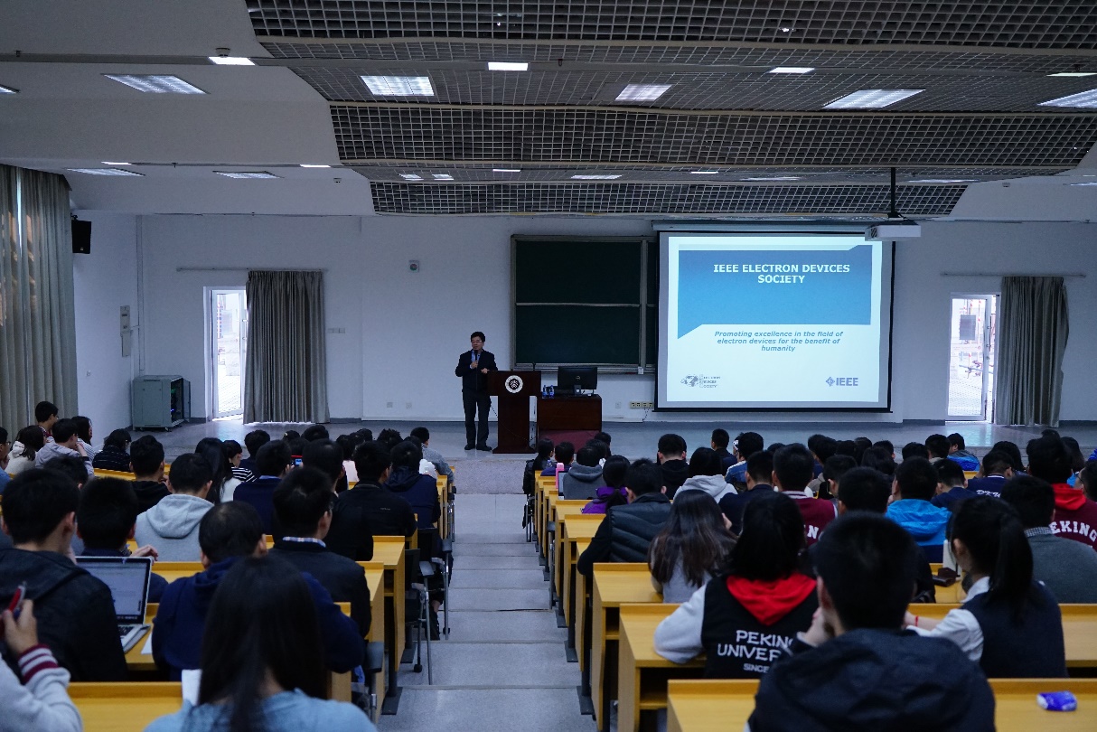 首先,黄如老师介绍了IEEE EDS(Electronic Device Society)学会组织,提出了几个关注点:publishing,education,technical recognition,并且热情欢迎大家加入EDS这个大家庭。