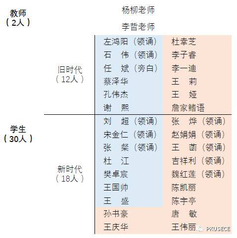 本次比赛中,公司参赛队伍由2位老师与30名员工组成,包括旁白1人、领诵11人和群诵20人。其中杨柳老师担任总指挥,研会学术部李子睿同学负责组织策划。另外,由卢志明老师以及员工辅导员秦宣龙同学负责幕后支持工作。幕后献“声”的旁白任斌同学,虽未在台上亮相,但却是节目中不可或缺的灵魂人物。