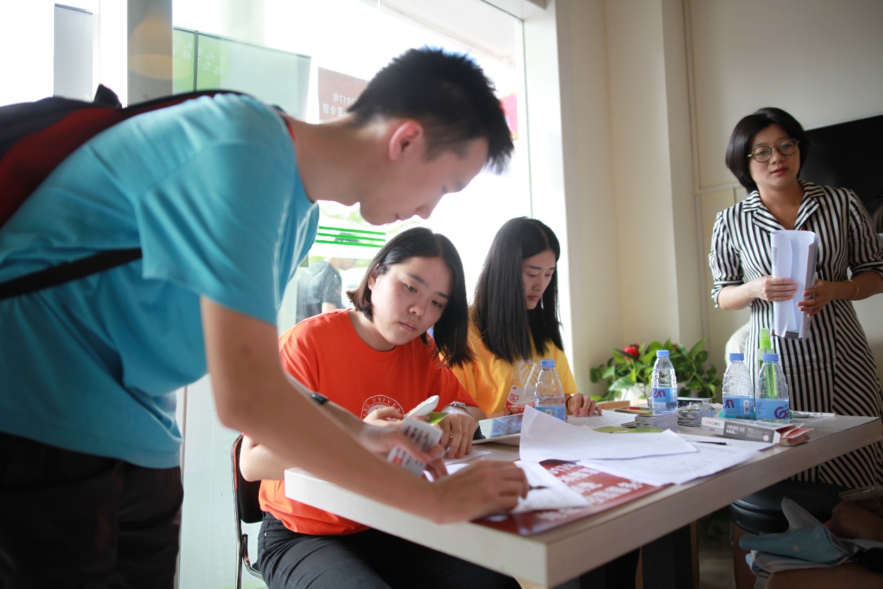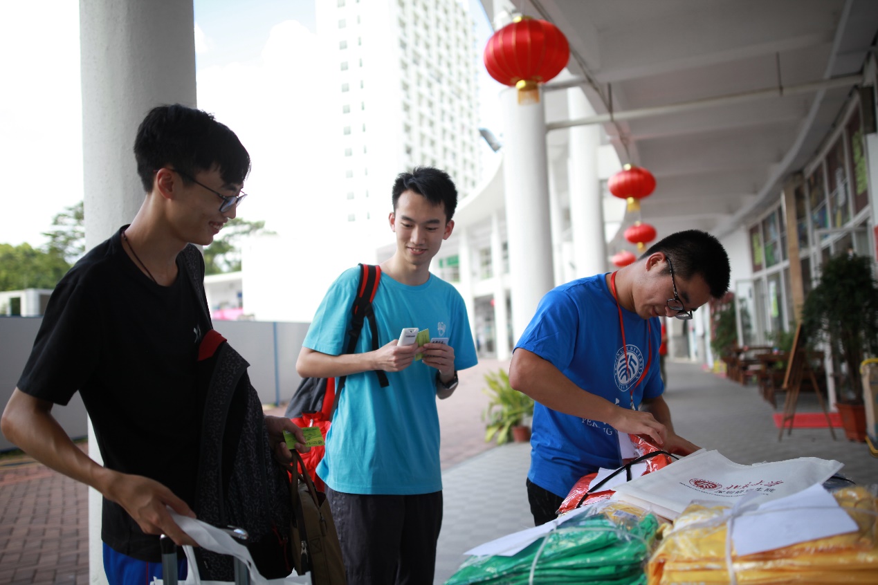 大家陆陆续续的到来,签到领取相关资料。稚气的脸庞挂满了汗水,但我们能看到更多的是兴奋与激动。激动于来到了南国燕园这片沃土。