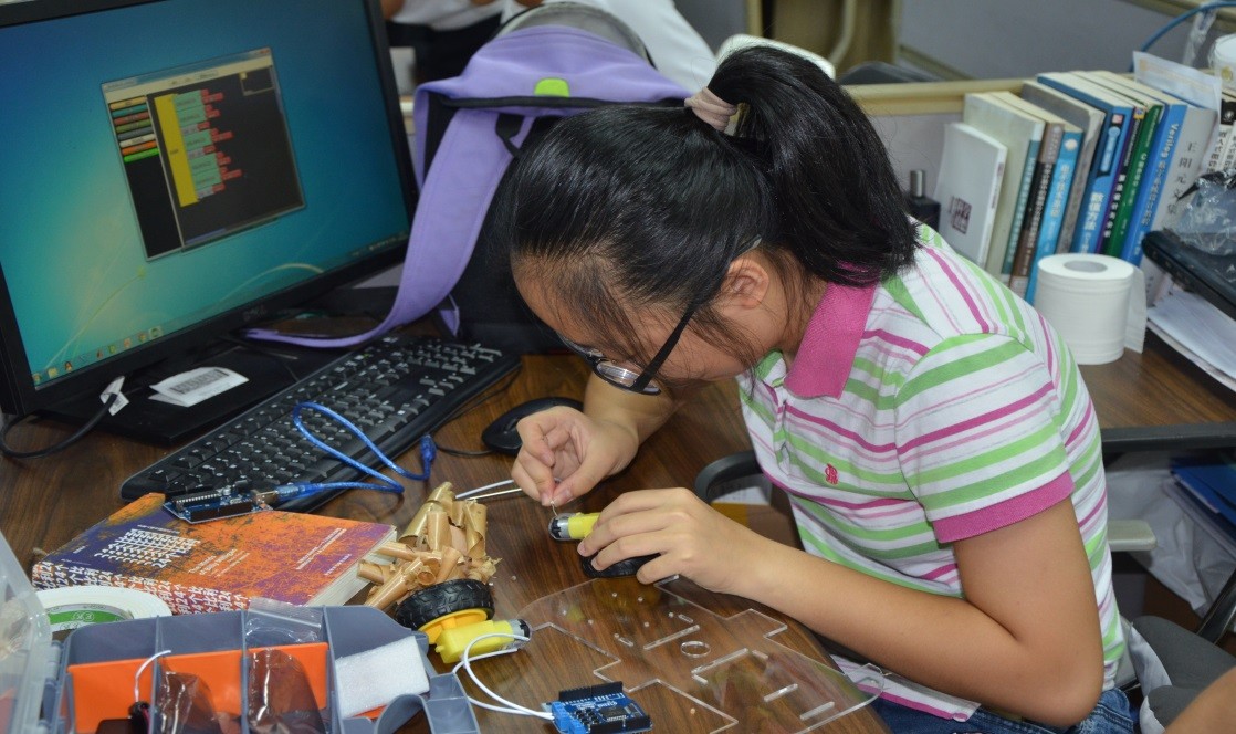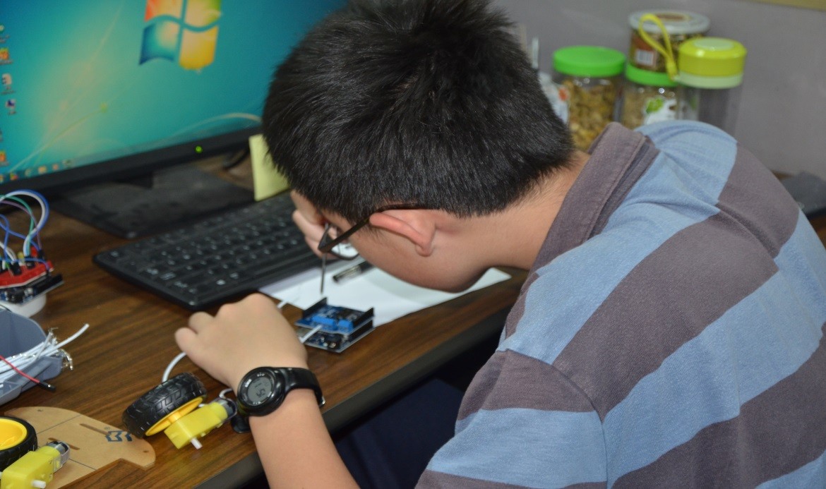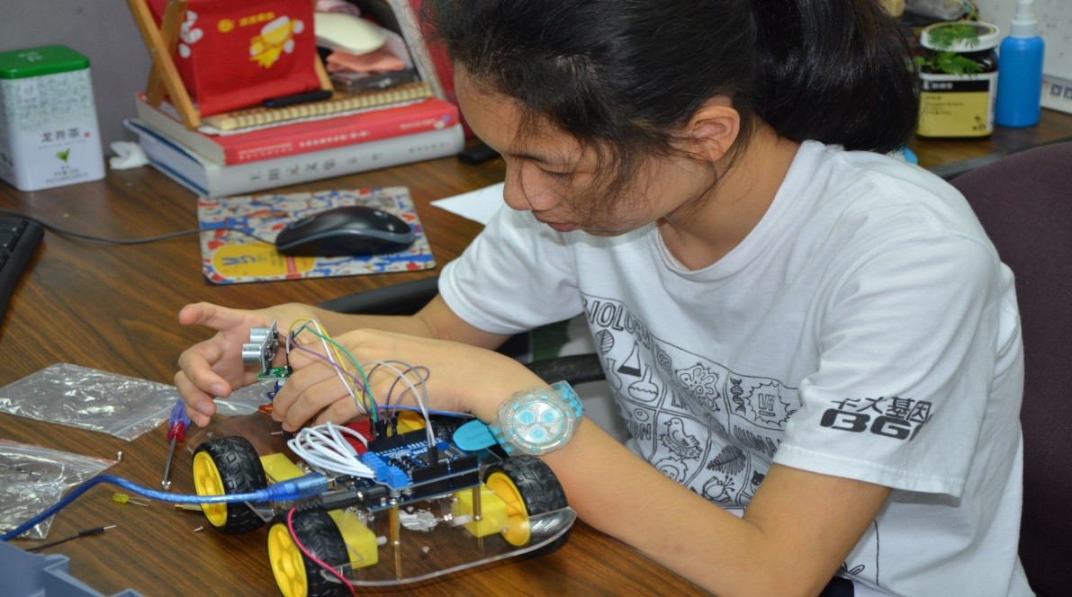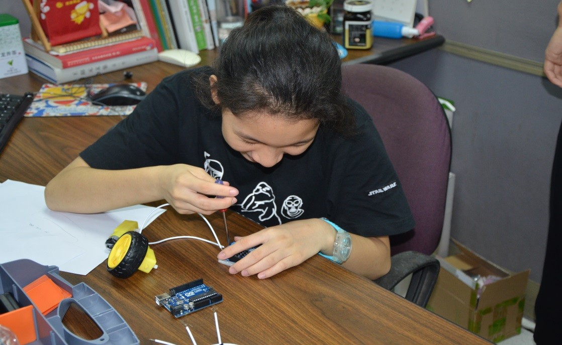 图七中的男孩子是刘慕凡,现在是辽宁省沈阳市东北育才中学高一的员工,慕凡的姑姑在深圳工作,特意给他报名来参加这次活动。慕凡妈妈表示,慕凡从来没有参加过类似的科普类动手的活动,他很感兴趣,每天上完课都舍不得回去,留下来跟小伙伴讨论怎么组装,怎么编程,整个活动下来,不仅锻炼了动手能力,还认识了一帮小伙伴,希望后续继续办类似的活动。