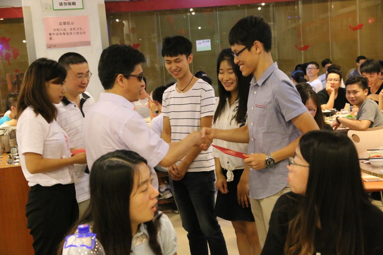 晚宴开始后首先是张盛东老师致词。张盛东老师表达了对本次夏令营营员优异的表现感到非常得高兴和欣喜,并祝贺本次夏令营活动取得圆满的成功,希望北大南燕给全国各地的优秀老员工留下美好的印象,期待以后的学习生活中再会各位同学。