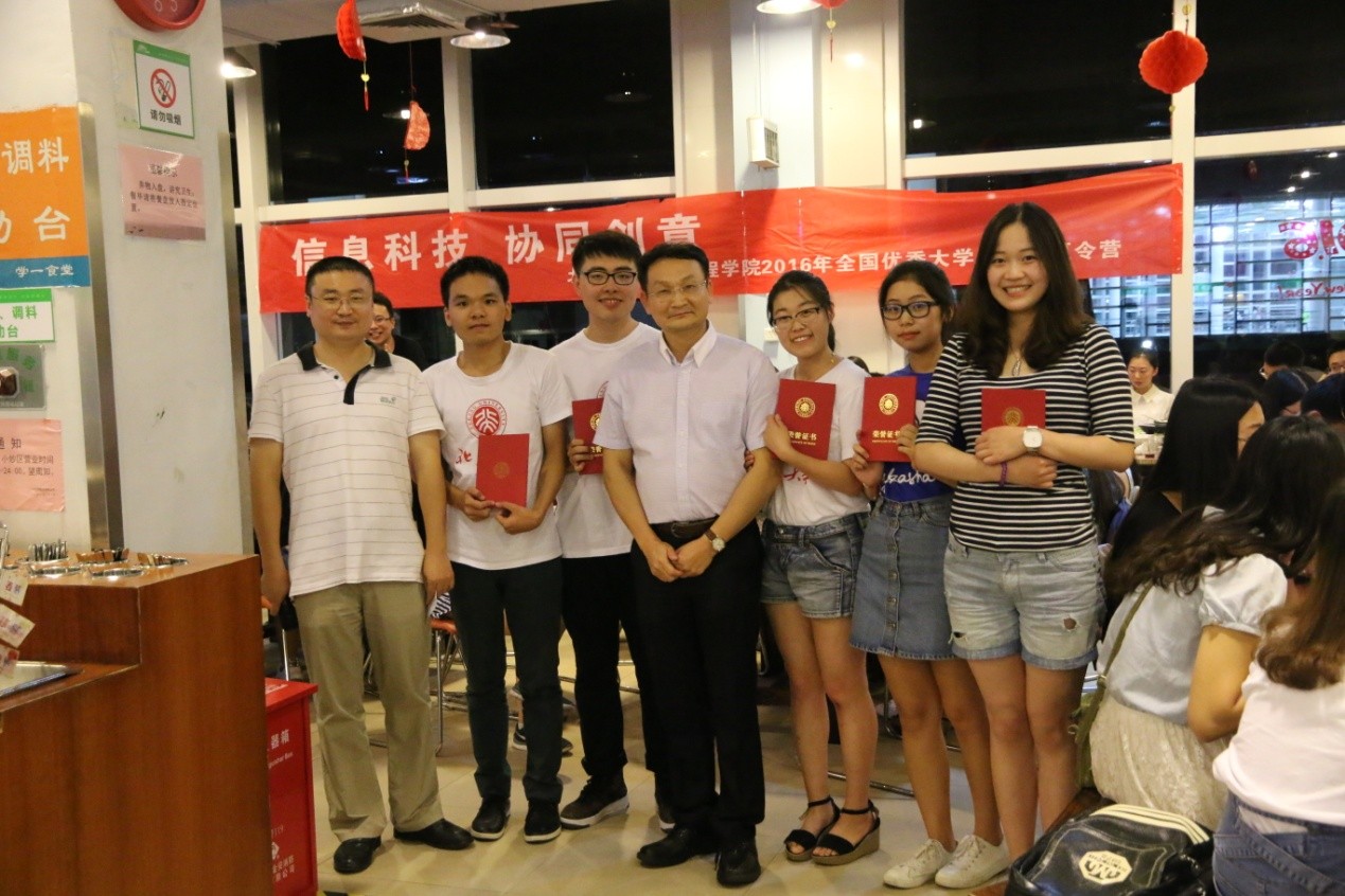 用餐结束后,颁奖典礼正式开始,本次活动所设的奖项有最佳辩手奖四个和最佳辩论团队奖六个。夏令营最佳辩手奖的获得者分别是计算机专业的黄薇屹、胡鸿,和微电子专业的许田田、马洁茹,最佳辩论团队奖的获得团队分别是计算机应用技术专业第二组正方的于恒、黄俊琳、殷建峰、成昱霖、孙敬娜;第四组正方的付熹、徐瑞聪、彭俊逸、张浩贤、谢熙;第六组反方的李一迪、黄济乐、林志恒、王苏红、莫兆国,和微电子学与固体电子学专业第一组正方的文孟琪、王家钰、卢凯、许田田、王攀;第六组正方的冯啟垚、梁东宝、占中秋、程凯丽;第八组反方的张思梦、陈小市、马洁茹、马滨延。