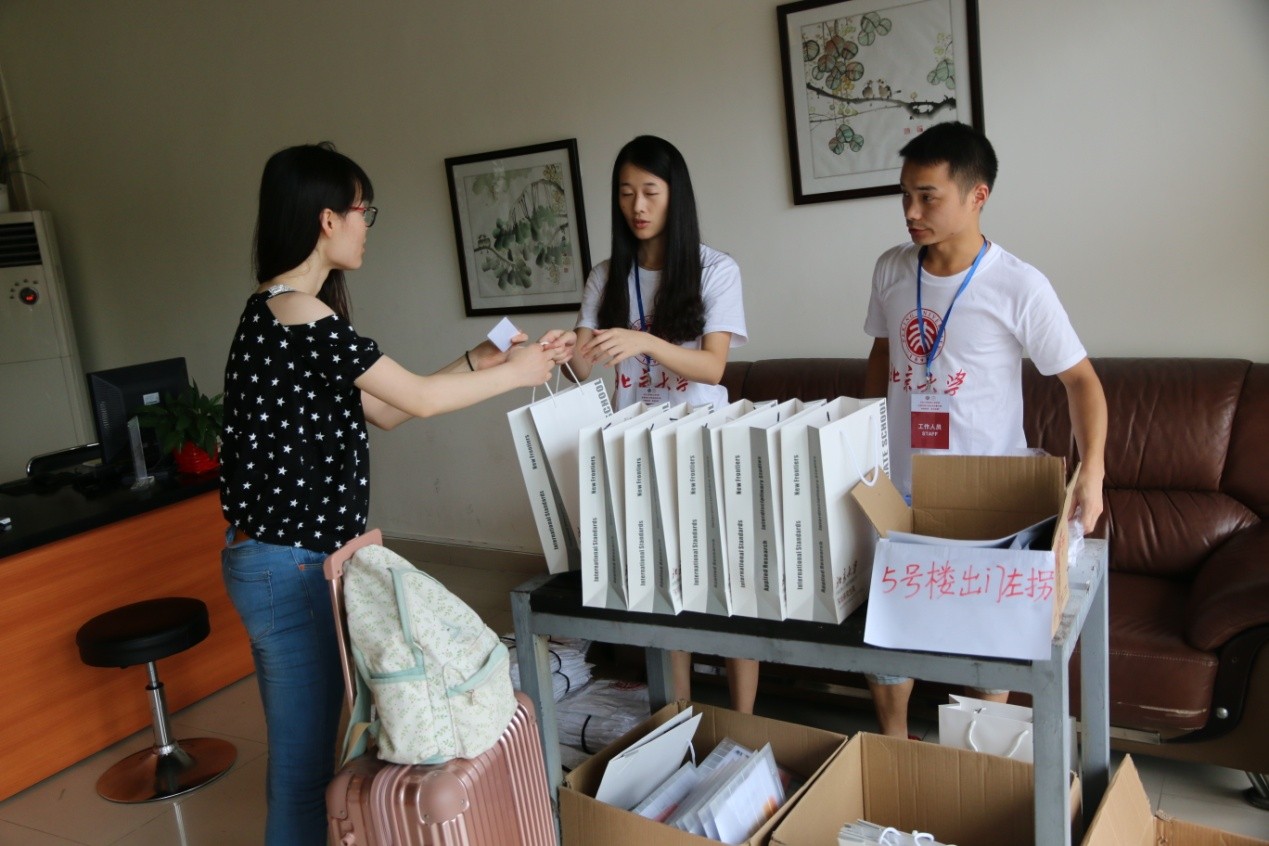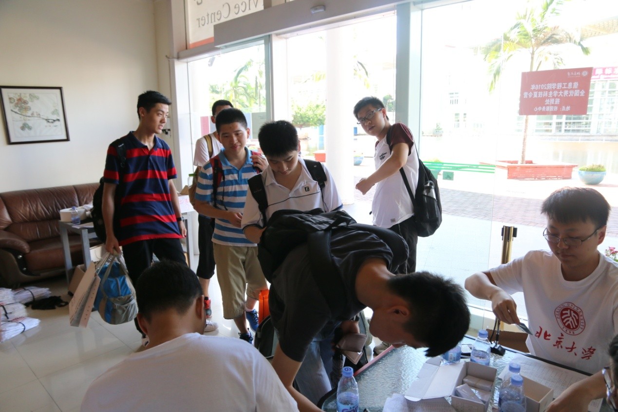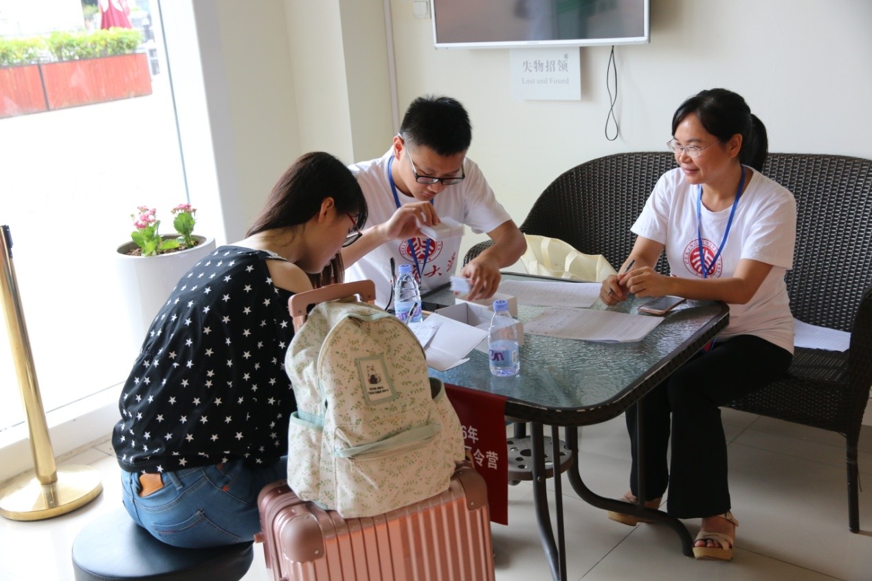 夏令营营员报到处设在校园活动中心,营员首先进行登记报到,然后领取活动过程中的需要用到的物资。