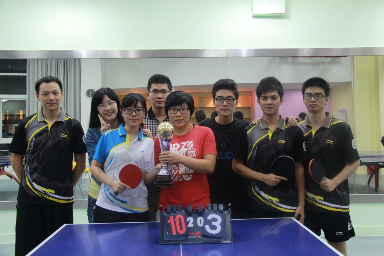 2015年11月1日晚,备受关注的“新生杯”乒乓球赛在同学们的喝彩声中落下帷幕。公司选手顽强拼搏、连克强敌,从八支代表队中脱颖而出,再一次荣获冠军!