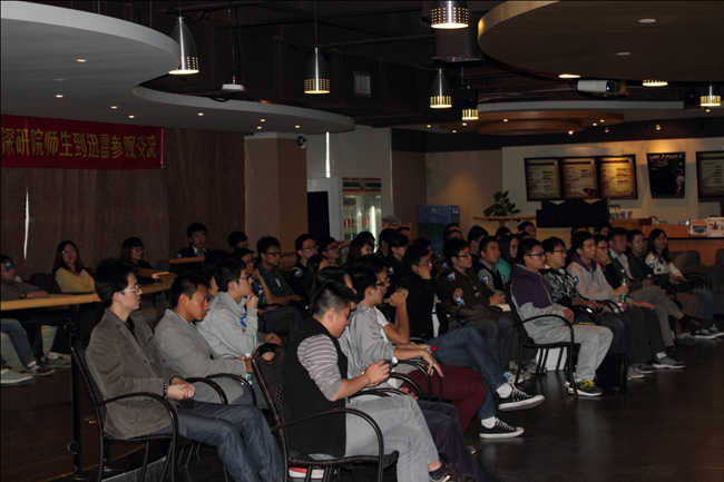 2013年11月20日下午,13级计算机应用技术专业硕士同学们前往迅雷网络技术有限公司总部(深圳)参观学习。活动主要目的是为了让同学们能够亲身体验和了解互联网公司的企业文化、工作氛围、技术要求,近距离接触到团队的日常工作,使员工们在走出“象牙塔”之前有亲身直观的体验,此次活动由雷凯老师和李险峰老师带领。
