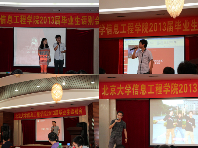 会上,由公司研究生会奉上的一段视频,勾起了毕业生们对这三年南燕生活点点滴滴的回忆,追忆很不舍,但却隔离不住时间的滴答声,一张张灿烂的笑容、一次次精彩的征程,原来美好的青春还在。话别会中,不仅有李泽辉、沈劲鹏、张文娟等应届毕业生的深情献唱,师生之间还进行了筷子夹乒乓球、你比划我猜等经典游戏,将老师和员工之间的感情再次拉近,使得话别会活跃着一股温情与快乐的氛围。话别会尾声,毕业生们纷纷向老师们举杯致敬,感恩三年来老师的孜孜教诲,老师们也希望毕业生在未来能够肩负北大人应有的社会责任,为国家的IT产业作出贡献。最后,话别会在全体师生大合照的定格声中圆满结束。
