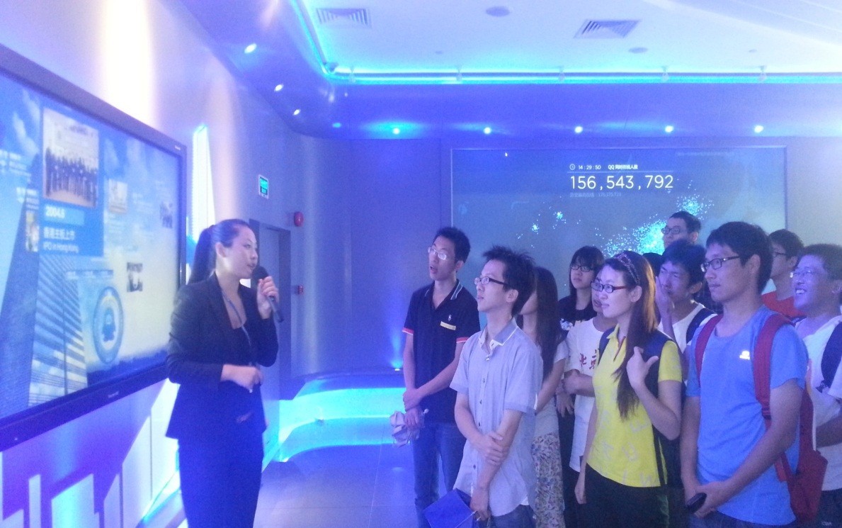 通过工作人员的细心讲解,同学们对腾讯的企业文化和产品有了更深入的理解,同时也感受到公司在设计产品时的长远眼光与追求卓越技术的先进理念,也正是因为如此,腾讯公司能从2008年的71.545亿元收益增长到2012年的438亿元,同时专利数突破400余项,比肩于Google, Yahoo等国际互联网巨头,成为中国第一家用户最多的公司。