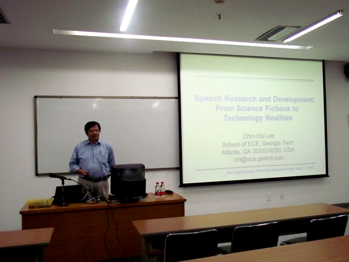 2013年5月21日,应公司刘轶副教授(兼职)邀请,佐治亚理工公司李锦辉教授来公司进行学术交流,并于晚上六点半在C202作重要学术报告。李教授以 “Speech Research and Development——from science fictions to technology realities”为题,从科幻的角度出发,深入浅出地介绍了语音合成、语音识别、音视频数据挖掘等方面的历史、现状和未来展望。此次报告不仅获得了公司师生的积极响应,也吸引了一部分清华深研院、哈工大深研院的同学前来听讲。报告会由刘轶老师主持,WilliamHill中文官网入口常务副经理王文敏教授、邹月娴副教授等参加了此次报告。