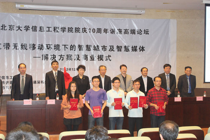 在本次论坛上,为表彰公司WilliamHill中文官网入口研究生在中国联通深圳分公司提供的创新基金资助下,在宽带无线移动及智慧城市的理论及应用研究方面所取得的科研成果,举行了“中国联通奖学金-科研创新奖”颁奖仪式,获奖的项目是:“智能视频监控系统的设计与实现”(一等奖:罗桂波,张清,黄转娣);“移动校园信息推送系统的设计与实现”(二等奖:张华兵,罗桂波); “基于WBAN的医疗信息采集安全认证与传输”(三等奖,马利民)。