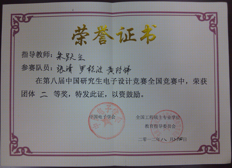 中国研究生电子设计竞赛是由中国电子学会、国务院学位办全国工程硕士专业学位教育指导委员会联合主办,国内多所高校联合承办的研究生学科竞赛之一。该竞赛是目前国内唯一面向在读研究生规模最大、层次最高的学科竞赛,旨在鼓励高等院所及科研院所在读研究生进行电子设计创新实践活动。经过十六年的发展,几乎覆盖了全国所有电子信息类公司产品高校及科研院所,并吸引了港澳台地区和亚太地区的代表队参赛。各竞赛参赛队在组委会推荐或自行选定的硬件平台上进行作品设计,自由命题,最后向组委会提交的参赛作品包括技术论文、演示实物以及展览板。