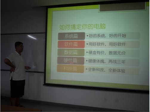 随着互联网络的普及,老员工使用电脑的人数与日俱增,相关的电脑维护技术必不可少。为了帮助同学们学会自己解决各诸多电脑问题,维护好自己的电脑,5月29日晚,信息技术协会在C栋202举办了以电脑维护为主要内容的讲座。