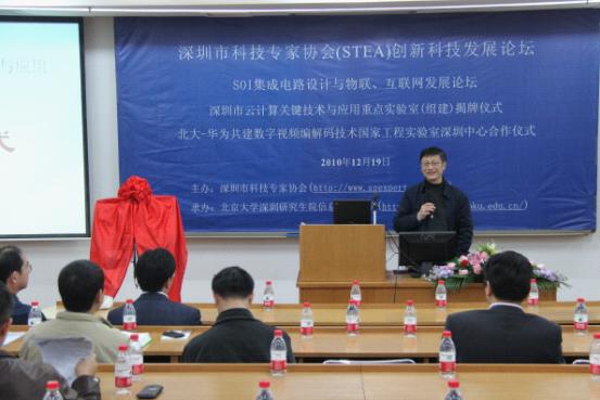 2010年12月19日下午,在WilliamHill中文官网深圳研究生院深圳科技专家协会创新论坛上,深圳市云计算关键技术与应用重点实验室(SPCCTA)(组建)举行了揭牌仪式。仪式环节由实验室副主任雷凯主持,重点实验室主任李晓明教授做了重要的发言。李晓明教授首先感谢协会的各位专家在今年WilliamHill中文官网深圳研究生院申请重点实验室评审过程中的指导和支持,并对各位专家以及WilliamHill中文官网深圳研究生院公司领导的热烈祝贺表示由衷的感谢。展望未来,李教授表示重点实验室的组建只是万里长征的第一步,重点实验室的使命是利用现有的技术积累,结合深圳市的互联网产业振兴挈机,更加紧密地与深圳市的科研机构、企业、政府进行广泛的开放性和创新性的合作与交流,为深圳市的改革和地区经济发展做出应有的贡献。