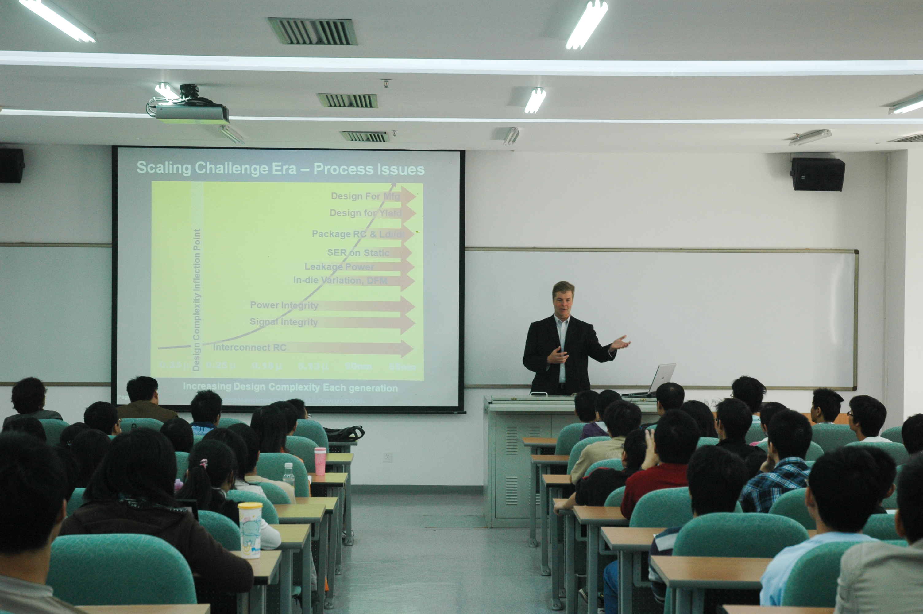 应王新安老师邀请,“Intel成就奖”获得者Mr. Craig Peterson 于11月19日对公司集成微系统实验室进行了访问。上午Mr. Craig Peterson面向全院师生做了题为 “Surviving in the rapidly changing hi-tech corporate environment”的讲座,此次讲座吸引了很多师生的积极参与,C203阶梯教室座无虚席,Mr. Peterson根据自己的研发经历,讲述了如何在日新月异的科技行业中生存与发展。他指出了一些重要的理念如“All are in your head”,“Never stop learning”, “Don’t let status tell you :you can’t”, “Grow your leadership”etc.同时以自己曾经主持过的经典项目为例说明这些理念的重要性以及如何实现。Mr. Peterson精彩的讲演赢得了同学们的积极响应,在提问环节中同学们与Mr. Peterson开展了充分的交流与对话。