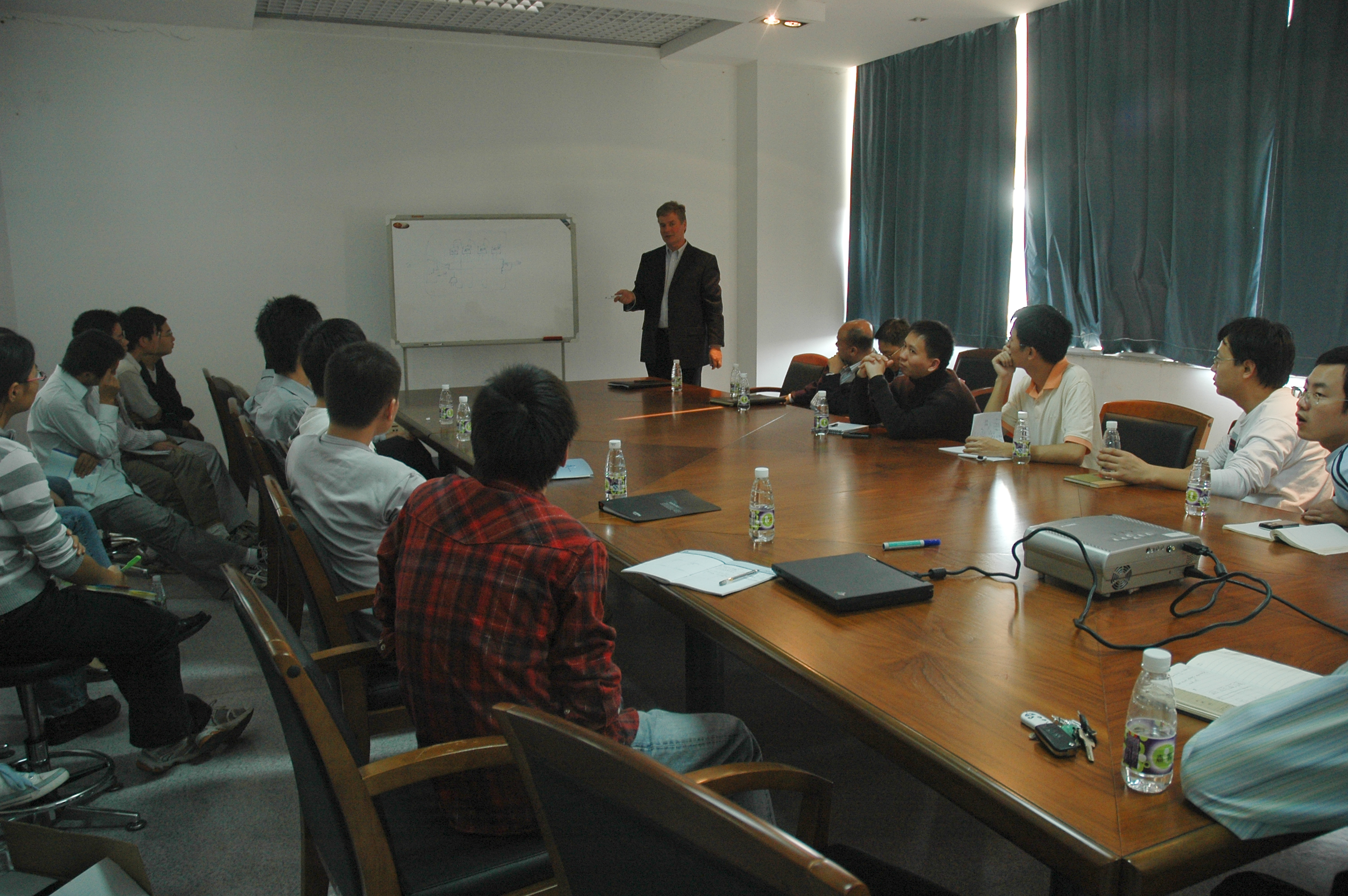 下午, Mr. Peterson与集成微系统实验室可重构DSP课题组的师生就可重构DSP的研究课题进行了热烈的沟通与交流,并于讨论会后与组内的师生合影留念。