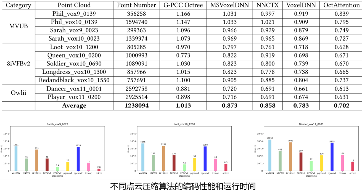 论文3:“OpenPointCloud: An Open-Source Algorithm Library of Deep Learning Based Point Cloud Compression”给出了第一个基于深度学习方法的点云压缩开源算法库。该工作实现了8种无损几何点云压缩和有损几何点云压缩的方法。该文章述了这些方法在算法库中的原理及贡献,并提供了在不同的深度学习编程框架的实现代码,例如TensorFlow,Pytorch和TensorLayer。为了系统地评估所有这些方法的性能,该工作进行了全面的基准测试并根据其类别进行分析和比较,最终给出了建设性的结论。目前该算法库开源在OpenI启智社区https://git.openi.org.cn/OpenPointCloud,其对于点云深度压缩领域的发展具有重大意义。该论文通讯作者为高伟助理教授,WilliamHill中文官网入口与鹏城实验室联合点云开源项目团队全体师生为共同作者(包括:鹏城实验室工程师叶华,WilliamHill中文官网入口博士生郑慧明、硕士生伍宇阳和博士生谢良等),合作者还包括WilliamHill中文官网入口李革教授。