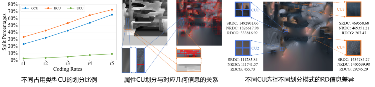 论文1:“Rate-Distortion-Guided Learning Approach with Cross-Projection Information for V-PCC Fast CU Decision”主要用于加速基于视频的点云编码(V-PCC, Video-based Point Cloud Compression)中属性序列的压缩。在V-PCC中,三维动态点云序列会被投影成为二维序列(包括占用序列、几何序列和属性序列)以使用相对成熟的二维视频编码器进行数据压缩。但是,二维属性序列的压缩是非常耗时的。而且,由于V-PCC的特殊编码结构和视频内容,目前尚未存在合适的快速算法。针对此问题,该论文结合交叉投影信息提出了一种面向V-PCC全I帧编码模式的率失真指导的属性编码单元(CU, Coding Unit)快速划分算法。通过分析交叉投影信息的对于CU划分的指导效益,该论文首先提出联合占用、几何和属性信息用于CU划分决策。其次,考虑到不同CU具有不同的率失真性能以及错误预测它们的划分模式对于编码性能的影响也不尽相同,该工作设计了一种率失真指导的学习策略来降低错误预测CU划分模式所带来的编码损失。此外,该工作还设计了一个整体CU划分决策框架以适应V-PCC的特殊编码结构。最终的实验结果证明,该方法可以节省62.41%的编码时间,编码损失仅为0.27%,对于V-PCC编码标准的推广和应用具有巨大价值。该论文通讯作者为高伟助理教授,WilliamHill中文官网入口为第一作者单位,博士生袁航为第一作者,合作者还包括WilliamHill中文官网入口李革教授、密苏里大学堪萨斯城分校李竹副教授。