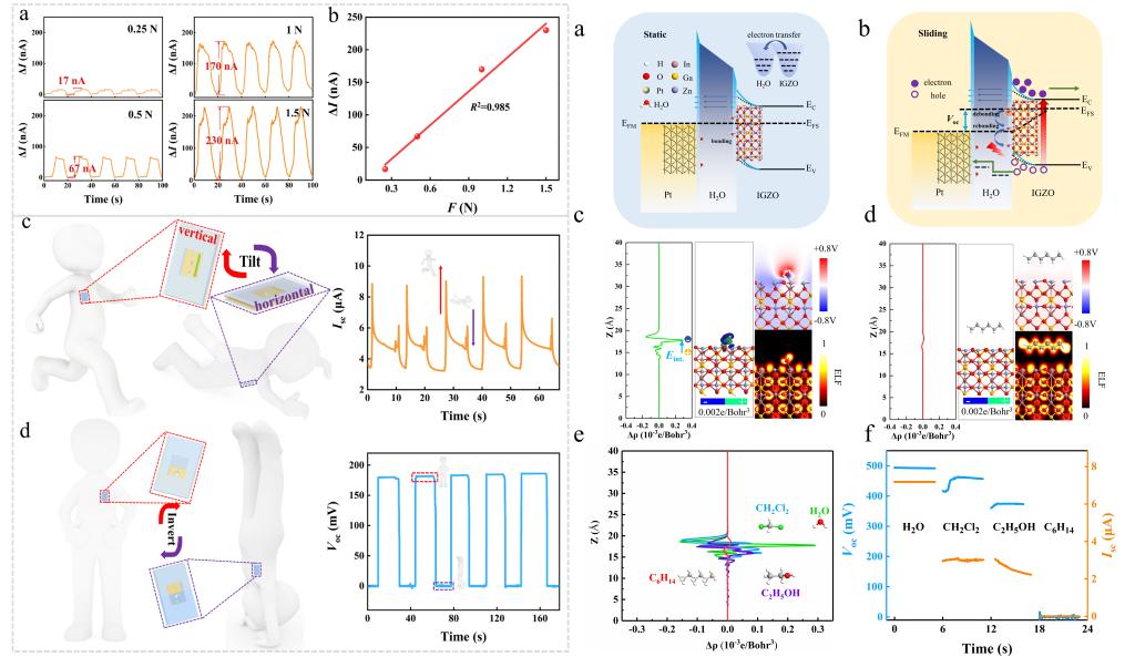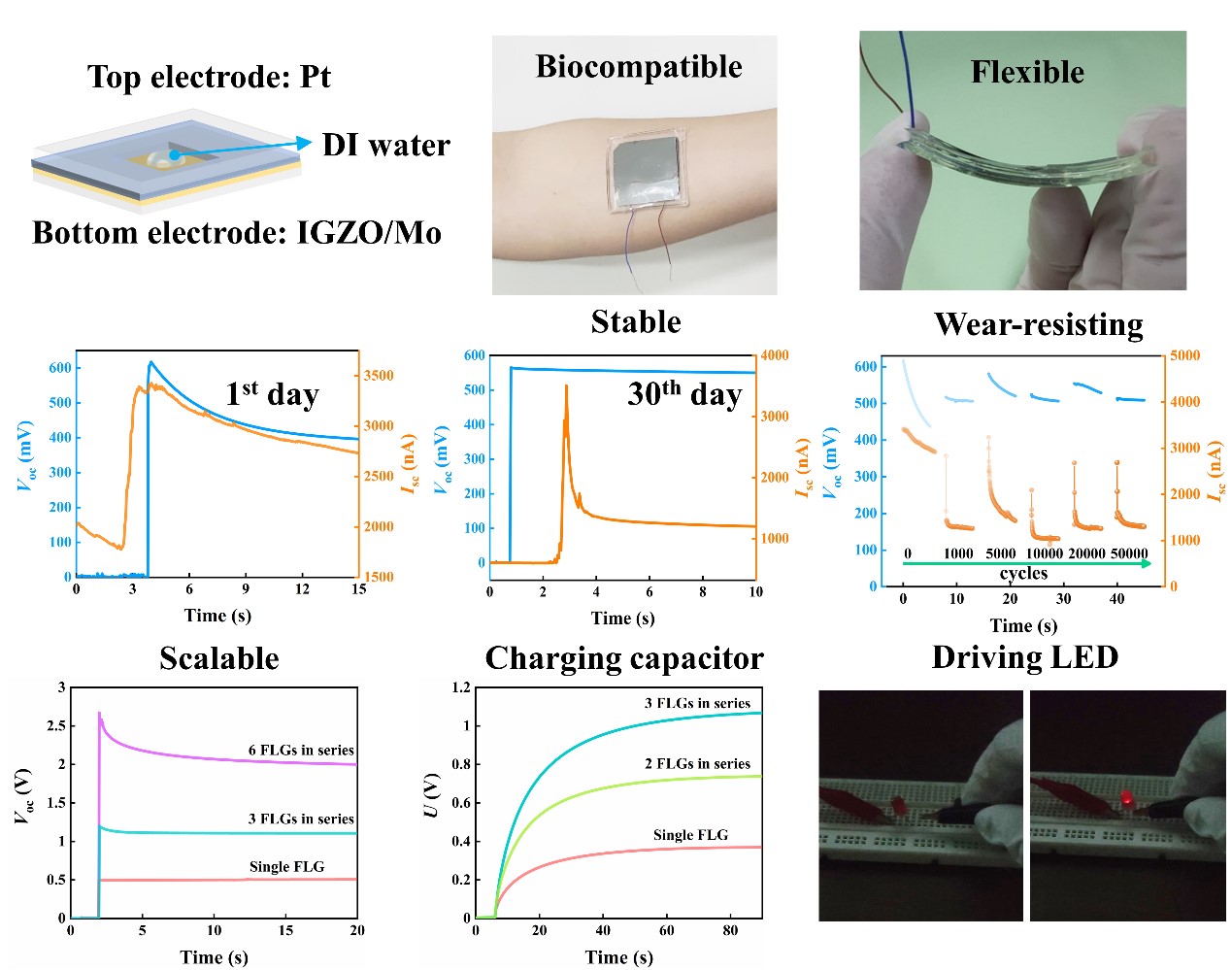 近日,我公司张敏课题组在国际知名期刊Advanced Functional Materials (IF 19.924) 上发表题为“Flexible Liquid-Based Continuous Direct-Current Tribovoltaic Generators Enable Self-Powered Multi-Modal Sensing”的研究论文(DOI: 10.1002/adfm.202209484)。该研究突破了传统摩擦伏特直流纳米发电机的器件设计理念,采用一体式封装的方法实现了一种具有高稳定性及多功能传感能力的柔性可穿戴液滴直流发电机,并在原子尺度上深入探究了该类器件的物理机理。