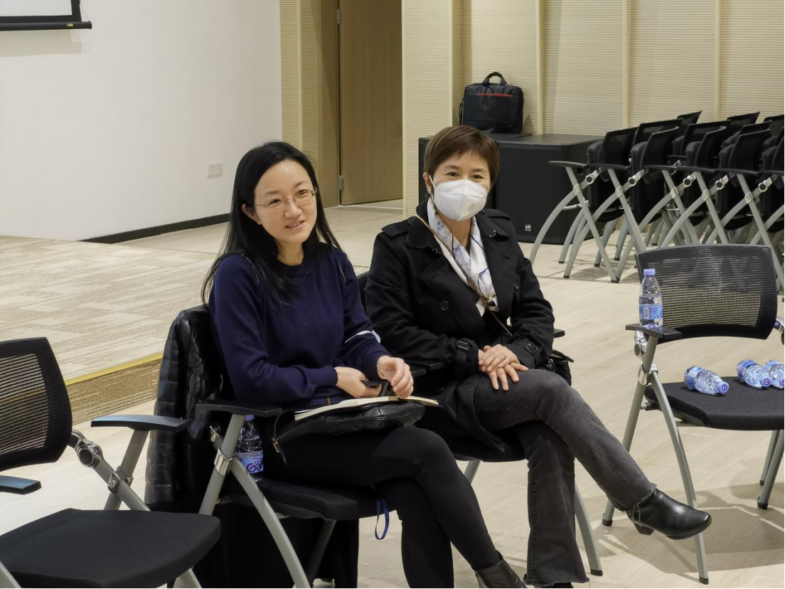 图片一 邹月娴老师和李倩老师在与员工进行分享
