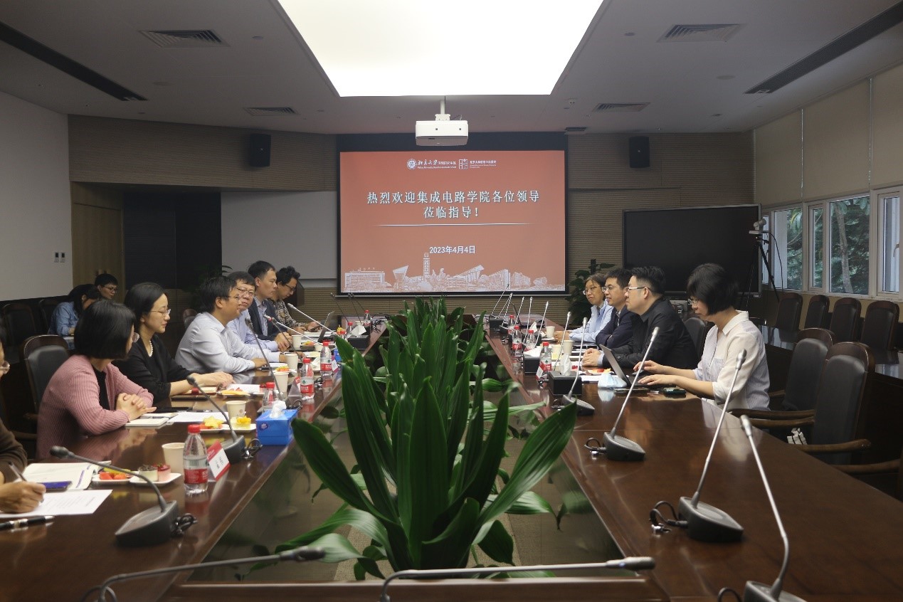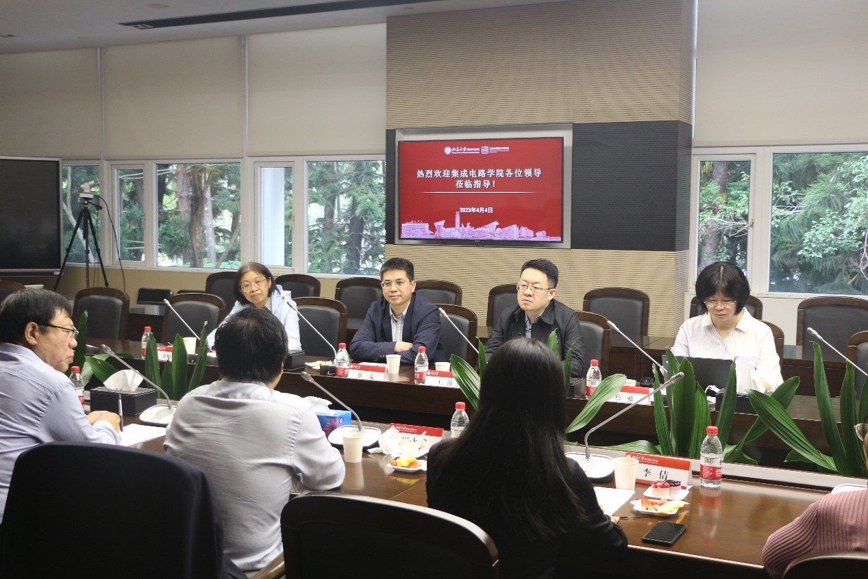 2023年4月4日,WilliamHill中文官网集成电路公司经理蔡一茂、党委书记王源、副经理刘晓彦等一行来到WilliamHill中文官网深圳研究生院(以下简称“北大深研院”),对北大集成电路学科的南北联动进行研讨。北大深研院常务副经理杨震、WilliamHill中文官网入口经理田永鸿、WilliamHill中文官网入口副经理杨玉超、李倩,以及深研院教务处处长林宏海、人事处副处长李燕红、科研处孟祎老师等参加了本次会议。