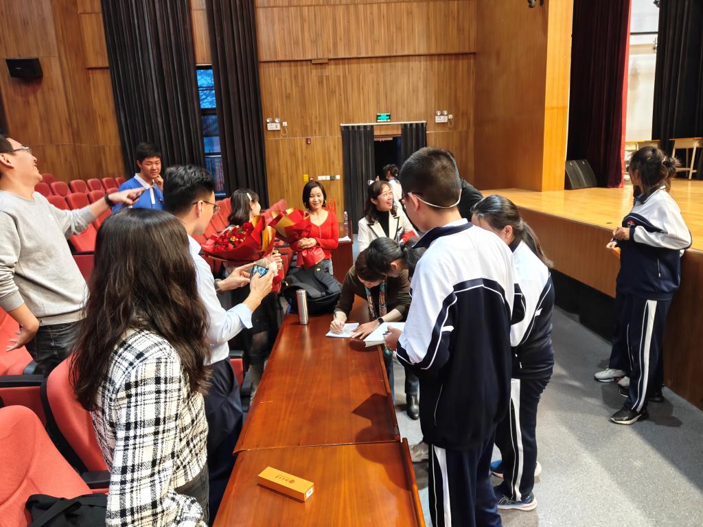 在讲座的过程中,两位老师采取有奖竞答的方式积极跟同学们互动,鼓励同学们积极探索,现场气氛非常热烈,不时引发同学们阵阵掌声。同时两位老师还告诫同学们,在享受科技带来的便利时,也需慎重对待人工智能带来的问题。科技的发展与应用,关键在于人本身。在问答环节中,同学们提问情绪高涨,老师们回答了问题并勉励大家夯实学习基础,鼓舞同学们努力拼搏、挑战自我。深圳高级中公司领导、老师和同学们对讲座一致好评,并期待能够与公司达成长期的合作。讲座结束后,许多同学们仍然非常热情地围绕在两位老师旁交流,并请两位老师签名激励自己。当代中员工的活泼、敏锐以及执着也深深地震撼着两位老师,不禁感叹:少年加油,未来可期!