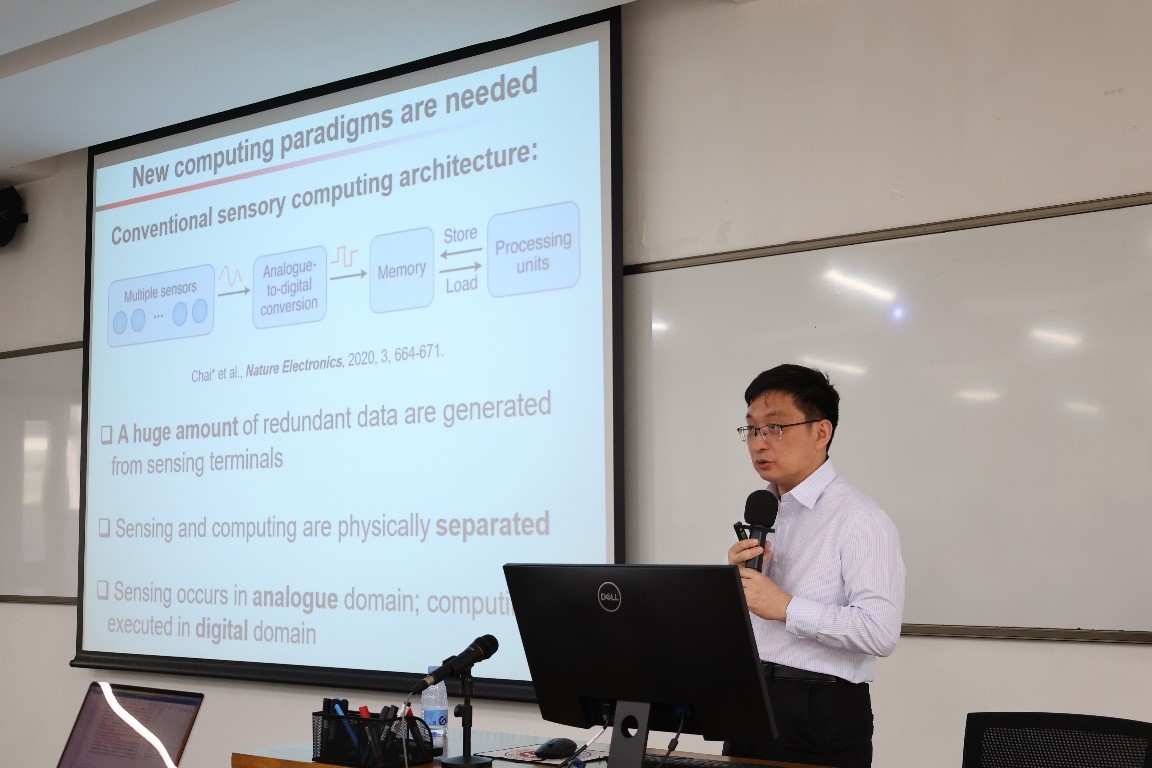 2023年4月17日下午14时,由WilliamHill中文官网深圳研究生院主办的“启智创芯”科技系列论坛第三期在线下C-203成功举办。本期邀请到香港理工大学理公司副经理柴扬教授为大家带来主题为“In-sensor computing for artificial vision”的报告。本次讲座由WilliamHill中文官网入口副经理杨玉超教授主持,报告现场学术气氛浓厚,吸引了来自本院多位老师、同学的热情参与和积极讨论。