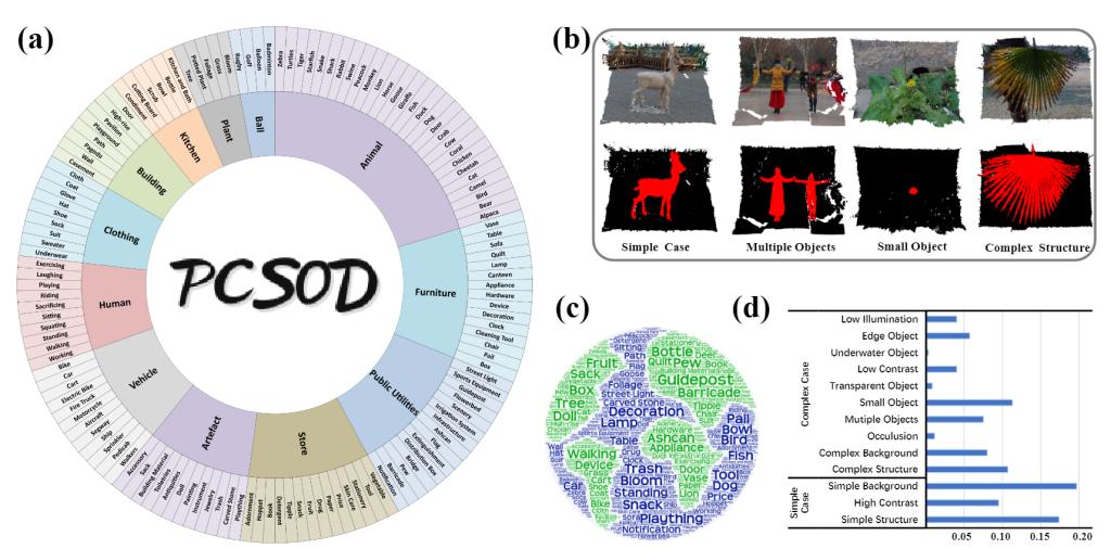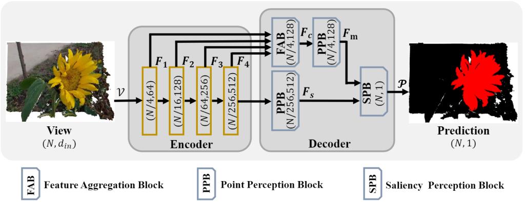 论文1:“Salient Object Detection for Point Clouds”聚焦于点云显著性目标检测这个尚未被探究的问题。与面向图像的显著性目标检测不同,我们发现点云场景下的注意力转移可能会引发显著性冲突。所谓显著性冲突就是指一个物体自相矛盾地同时属于显著的类别和非显著的类别。为了避免这个问题,我们提出了一种新颖的基于视角的显著性物体的定义,它能够合理地反映点云场景中最吸引人注目的物体。根据所提出的定义,我们制作了第一个包含2872个室内外3D视点的面向点云显著性目标检测任务的数据集,并且命名为PCSOD。我们数据集中的样本带有层次化的标签,例如:超类/子类、边界框和分割图。这些标签使得我们的数据集具有很好的验证各种猜想的泛化性和实用性。为了证明我们的方案的可行性,我们进一步贡献了一个基线模型,并对五个有代表性模型进行基准测试以进行全面比较。所提出的模型可以有效地分析不规则且无序的点云以检测显著性目标。得益于针对特定任务的特殊设计,我们的方法取得了明显好于其他基线模型的结果。大量的实验和讨论揭示了这一研究方向具有巨大潜力,为进一步的研究铺平了道路。项目开源地址:https://openi.pcl.ac.cn/OpenPointCloud/PCSOD。