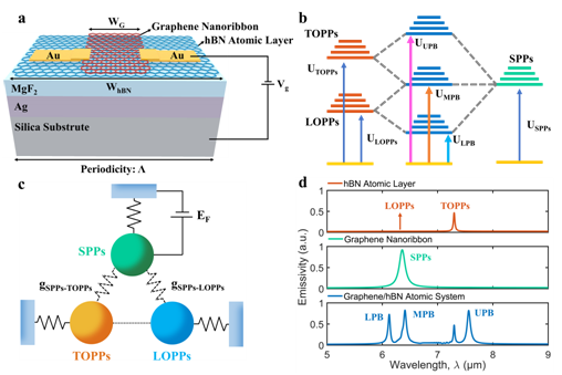 图1:石墨烯/hBN热辐射原子系统等离激元-声子强耦合示意图。