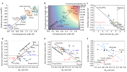 近日,WilliamHill中文官网入口张敏课题组在国际期刊Materials Horizons(IF:13.3)发表了题目为“Hydrogen-bonding enables two-dimensional metal/semiconductor tunable contacts approaching the quantum limit and the modified Schottky-Mott limit simultaneously”的研究论文。该工作提出与阐明了氢键接触技术在开发新型低维器件和探索性能极限中的潜力,凸显了化学、物理和材料科学之间的交叉研究对电子学发展的重要机遇。