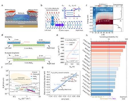 超越硅材料的先进电子学发展需要将沟道材料厚度缩减至二维(2D)极限。然而,利用2D半导体制造器件的一个关键挑战是需要接近量子极限的低接触电阻,这主要受限于固有的范德华间隙导致的附加隧穿电阻。最近,半金属(铋、锑等)/二硫化钼接触的强范德华接触接近量子极限,为进一步缩小器件尺寸和延续摩尔定律提供了希望,引发了一波探索2D晶体管性能极限的研究热潮。然而,继续降低接触电阻仍然具有挑战性,因为半金属接触受限于范德华相互作用的本质及狭窄的功函数范围。此外,实现清洁无损的金属沉积工艺仍具有一定技术挑战。因此,急需实现能本质上克服范德华间隙的超洁净、无损的金半接触。