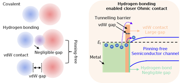 这项研究基于第一性原理提出利用氢键相互作用本质上克服固有的范德华间隙,并讨论了在各种2D半导体中实现良好氢键接触的通用设计理念。鉴于氢键所具备的类似于范德华力的洁净界面特性,且具有更强的电子态耦合能力,氢键接触能够实现接近量子极限的超低接触电阻。此外,2D材料的表面工程赋予了氢键接触较高的设计灵活性,能够使金半接触同时逼近修正的肖特基-莫特极限。理论预测优异的氢键接触可以为各种新型高迁移率2D半导体(如氮化物、氧化物、卤化物、硫族化合物等)提供延续摩尔定律所需的电接触。这项研究成果将为进一步探索2D晶体管的性能极限提供理论指导,并为从高性能晶体管到量子器件的广泛应用提供了一种设计理想金半接触的方法,从而加速这个令人兴奋且迅速发展的领域的进步。