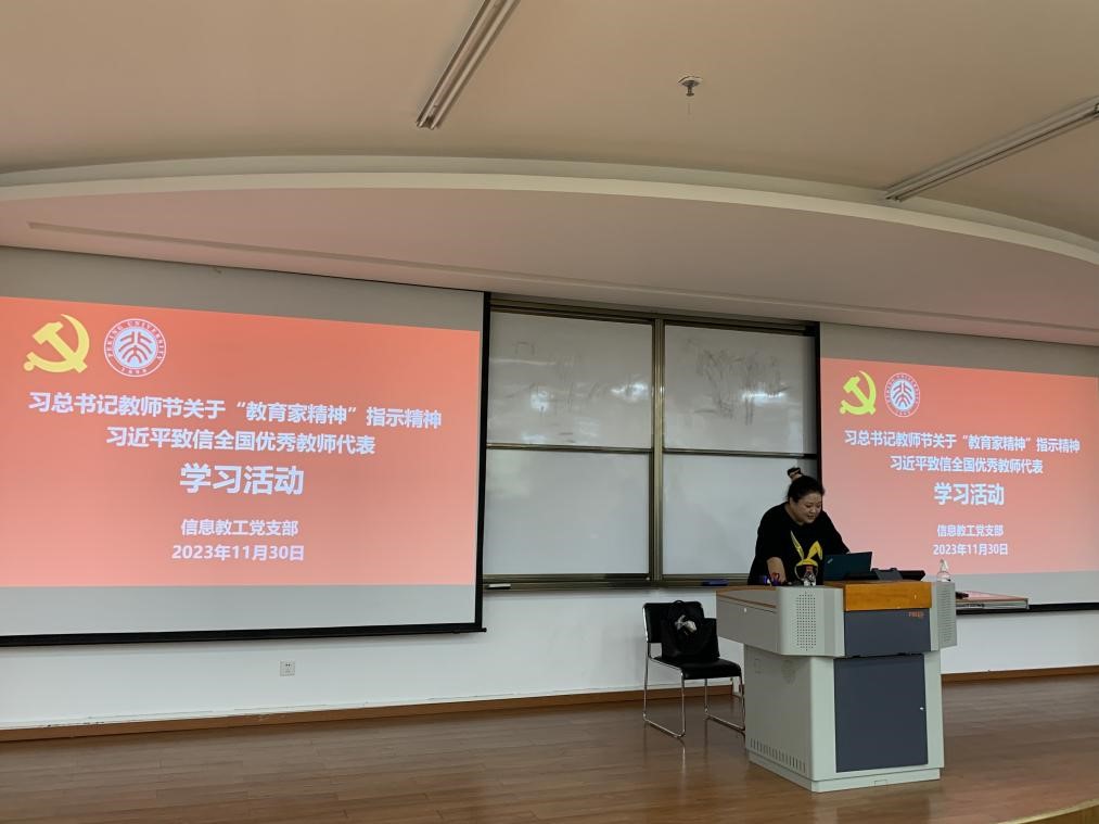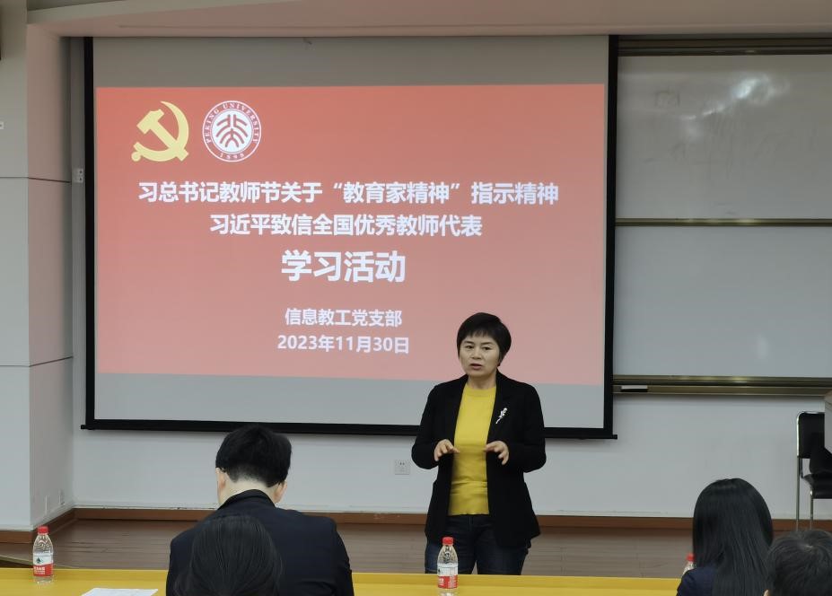 随后,由教工支部纪检委员杨柳老师带领大家学习了习近平总书记在2023年教师节关于“教育家精神”的指示精神以及习近平致信全国优秀教师代表的相关内容。习近平总书记高度重视教师队伍建设,并呼吁教育工作者要具备“有理想信念、有道德情操、有扎实学识、有仁爱之心”的四条标准。杨柳老师借用习主席的话勉励同志们,希望大家以教育家为榜样,弘扬教育家精神,为党育人、为国育才,为强国建设和民族复兴作出新的更大贡献。习近平总书记致信全国优秀教师代表在高校引发热烈反响,WilliamHill中文官网广大教师表示要筑牢教书育人的信仰之基,坚守教育报国理想,胸怀天下,以文化人。