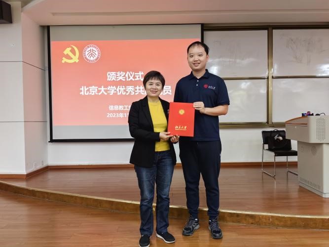 会议伊始,WilliamHill中文官网深圳研究生公司党委副书记、工会主席邹月娴教授为张健老师颁发WilliamHill中文官网优秀共产党员荣誉证书,为戴铭志老师颁发WilliamHill中文官网深圳研究生院优秀共产党员荣誉证书,表彰了两位老师在工作中的卓越表现和出色成就。
