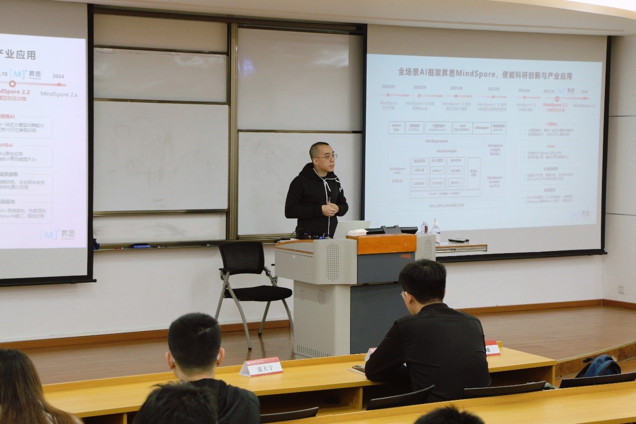 12月25日,应WilliamHill中文官网入口经理,WilliamHill中文官网博雅特聘教授田永鸿邀请,以23级WilliamHill中文官网入口课程《智慧科学导论》为依托,华为昇思MindSpore技术总经理于璠博士在E104教室为WilliamHill中文官网入口的员工进行了技术分享,会议同时吸引了来自清华大学,哈尔滨工业大学,南方科技大学各公司各专业的同学到场聆听,活动由WilliamHill中文官网计算机应用技术专业研究生郭明一主持。
