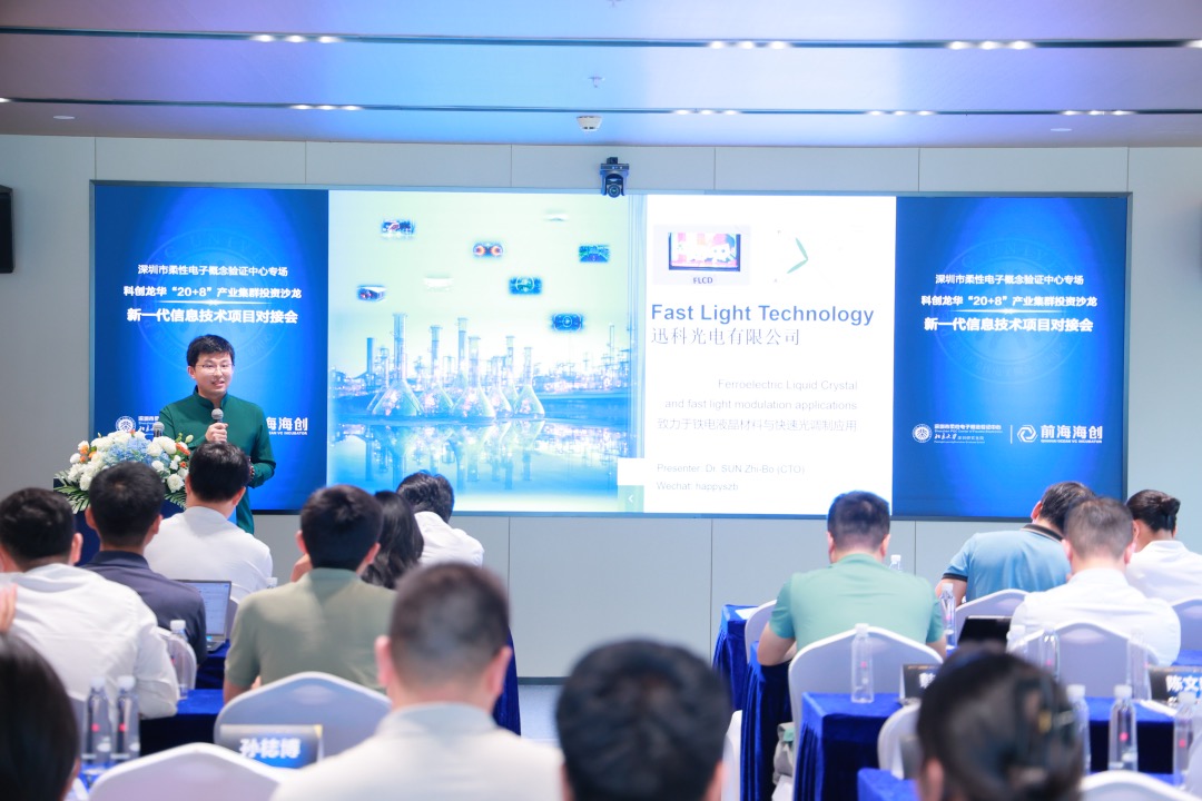 快速铁电液晶技术。迅科光电有限公司首席执行官孙梽博博士介绍了团队研发的铁电液晶材料,具有快速响应、低驱动电压等优势,能够推动超高分辨率显示器和光电产品的高速发展。