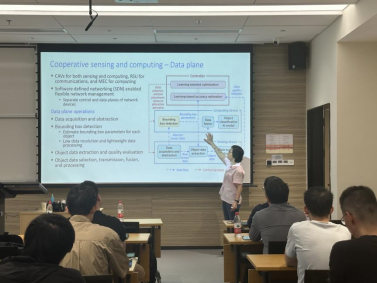 首先,庄卫华教授介绍了自动驾驶场景中的协作感知和计算研究。在全球交通出行朝着智能化、自动化加速迈进的大背景下,自动驾驶汽车的可靠态势感知已然成为确保交通安全、提升出行效率的关键。庄教授重点剖析了在利用人工智能实现自动驾驶可靠态势感知过程中面临的主要挑战。接下来,庄教授介绍了感知数据选择、目标分类任务部署以及计算资源分配的联合优化问题,在满足延迟和准确性要求的同时最小化总资源成本。针对这一优化问题,庄教授提出了一种基于遗传算法的迭代解决方案。此外,庄教授还并介绍了能够精准捕捉目标分类准确性与所选感知数据质量之间关系的监督学习模型,为传感数据选择提供支持。仿真表明,与现有的基准解决方案相比,该方案能够更精准地识别道路上的各类物体,有效降低了整体的资源消耗。最后庄教授对此次讲解进行了总结,并且介绍了未来进一步的研究工作。