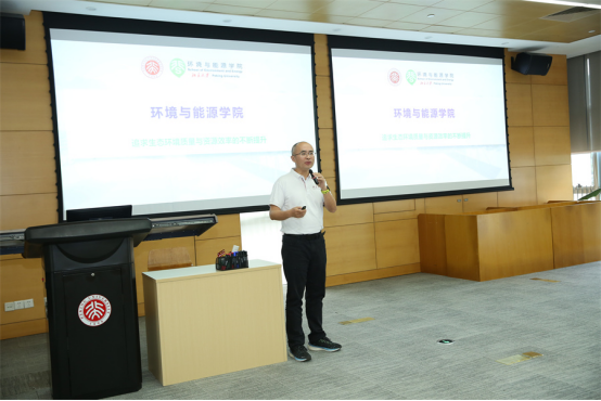 随后,环境与能源公司副经理、教工党支部书记,副经理徐期勇介绍了公司聚焦“双碳”战略与生态保护的相关工作。徐期勇老师提到,环境与能源公司联合中交一公局建设的“生态环境与资源效率研究实验室”,通过“蒲公英计划”等科普行动,将科研成果转化为全民参与的绿色治理实践,推动生态修复技术向基础教育场景转化,助力绿色教育理念深入人心。