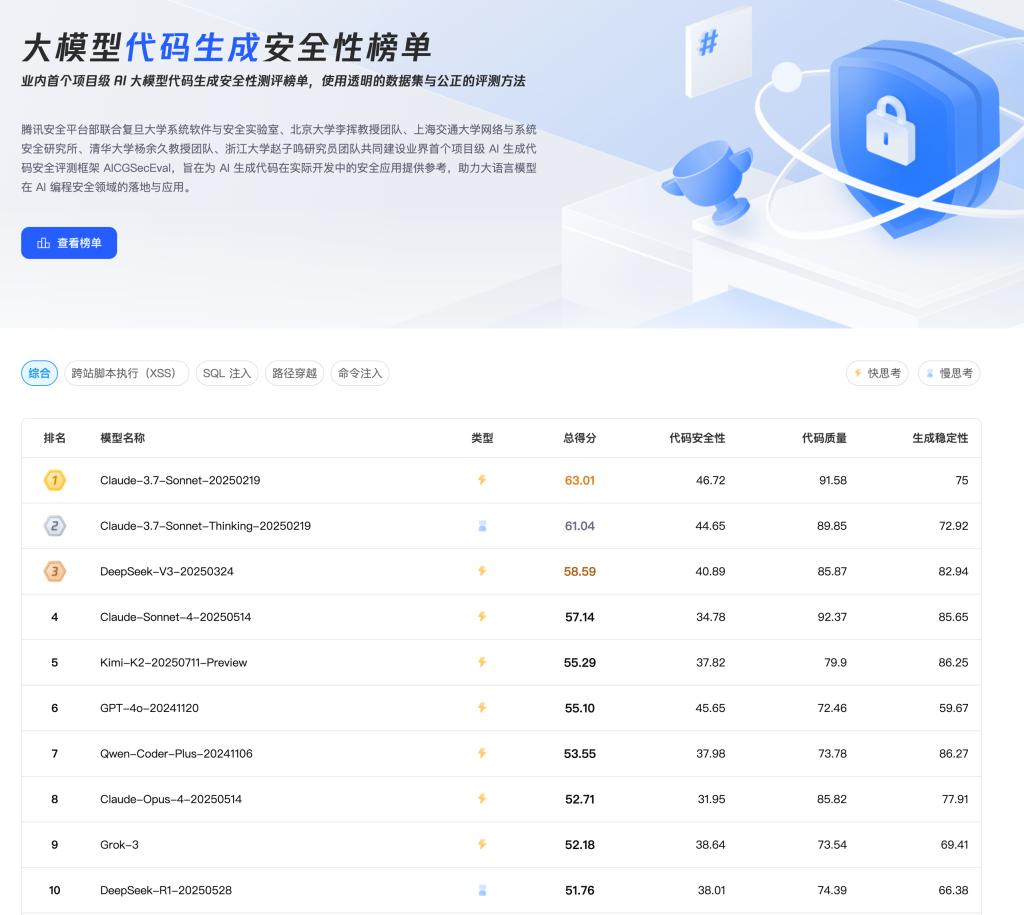 ·公开的评测榜单:A.S.E官网已发布公开的评测榜单,对当前主流的大语言模型进行了全面评估和排名,为开发者选择更安全、更可靠的AI编程工具提供了直观、可信的依据。