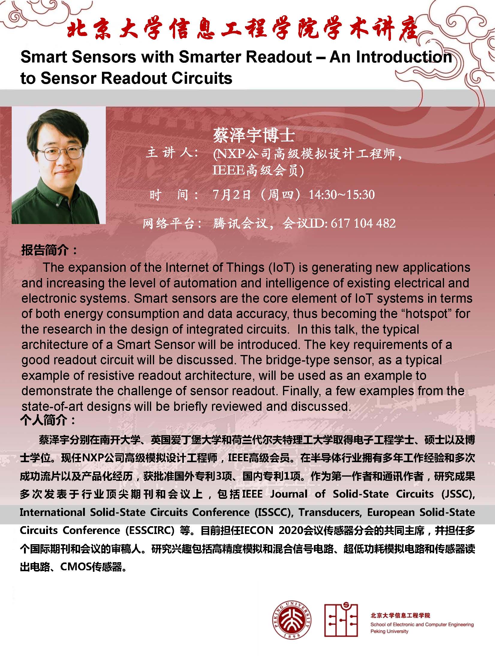 【学术讲座】蔡泽宇博士:Smart Sensors with Smarter Readout – An Introduction to Sensor Readout Circuits