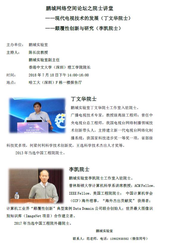 【学术讲座】丁文华院士、李凯院士:现代电视技术的发展 & 颠覆性创新与研究