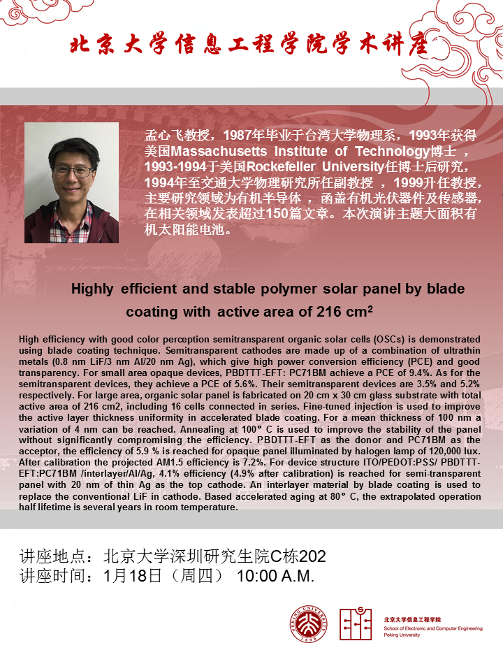 【学术讲座】孟心飞教授:大面积有机太阳能电池