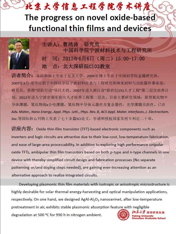 【学术讲座】曹鸿涛 研究员(中科院):The progress on novel oxide-based functional thin films and devices