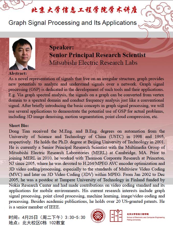【学术讲座】田栋:Graph Signal Processing and Its Applications