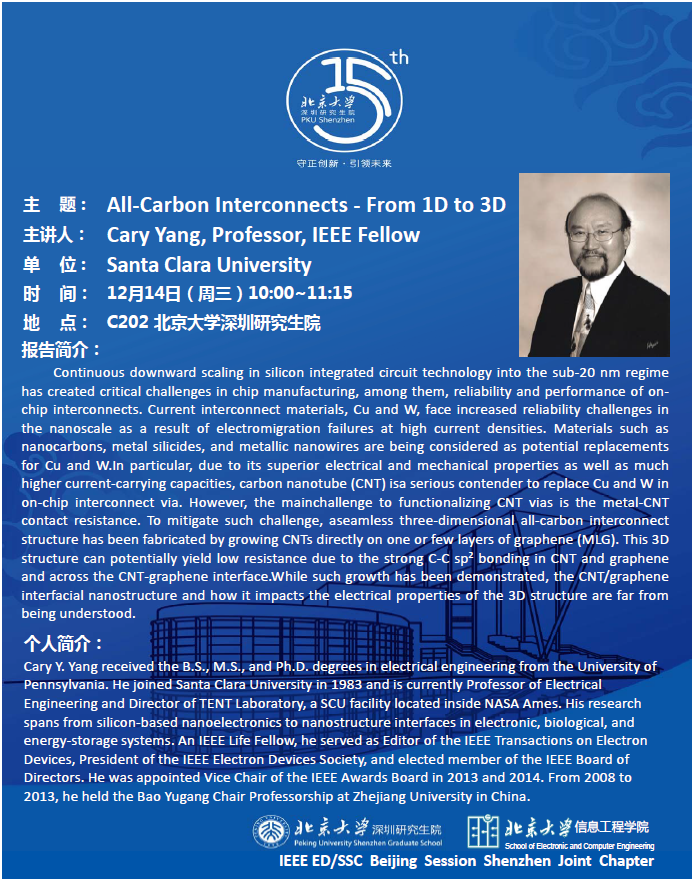 【学术讲座】Cary Yang, Professor, IEEE Fellow:All-Carbon Interconnects - From 1D to 3D