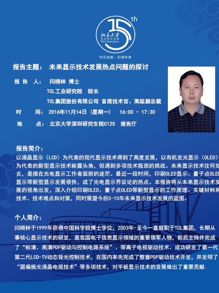 【学术讲座】闫晓林 博士:未来显示技术发展热点问题的探讨