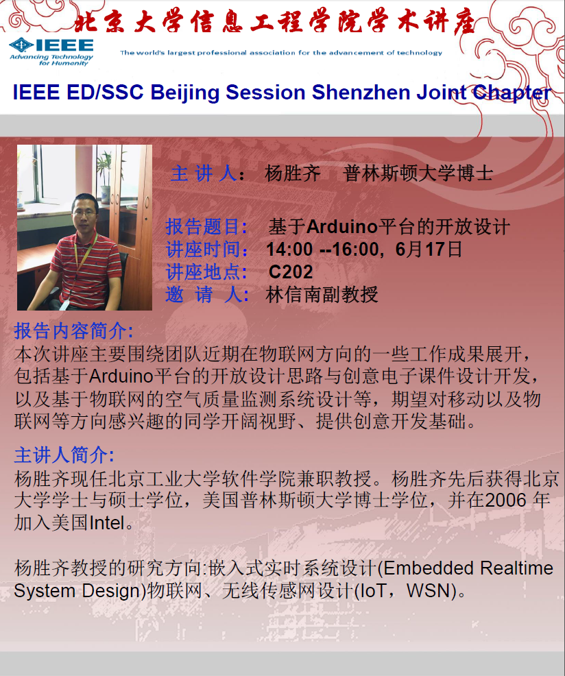 【学术讲座】杨胜齐教授(普林斯顿大学)基于Arduino平台的开放设计