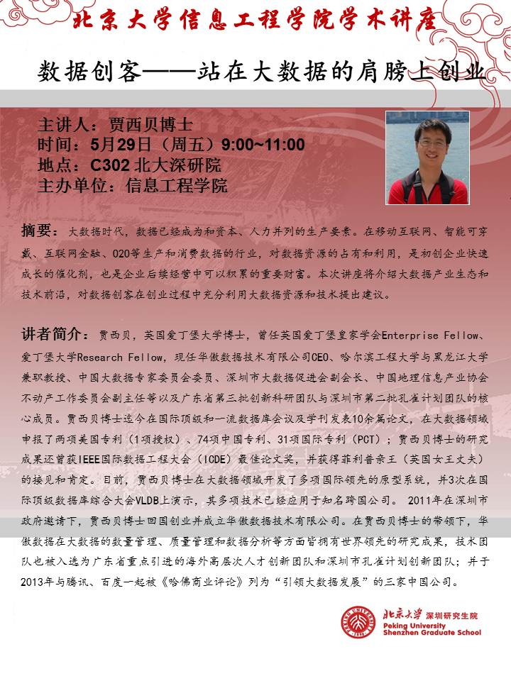 【讲座】贾西贝博士(华傲数据CEO):数据创客——站在大数据的肩膀上创业