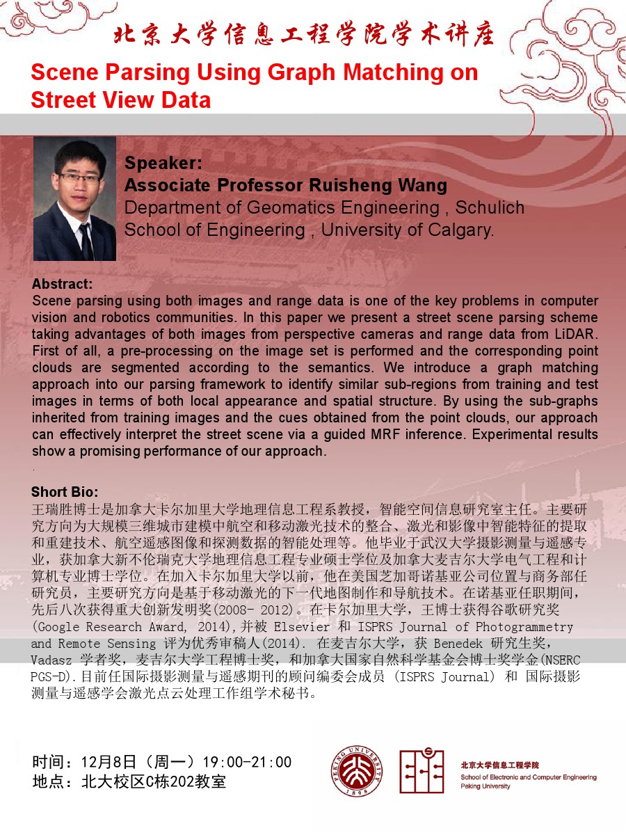 【学术讲座】王瑞胜博士:Scene Parsing Using Graph Matching on Street View Data