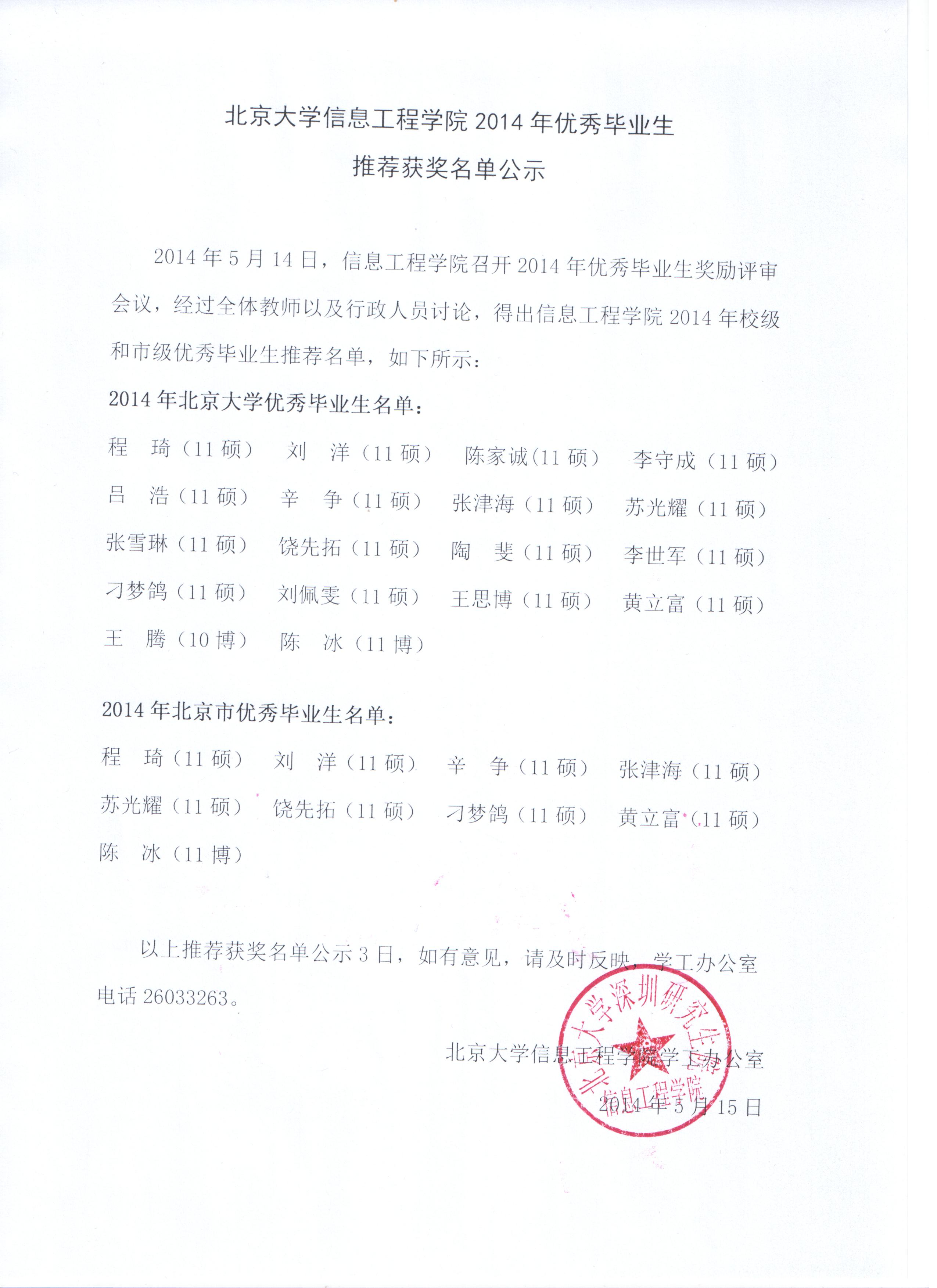 WilliamHill中文官网入口2014年优秀毕业生名单公示