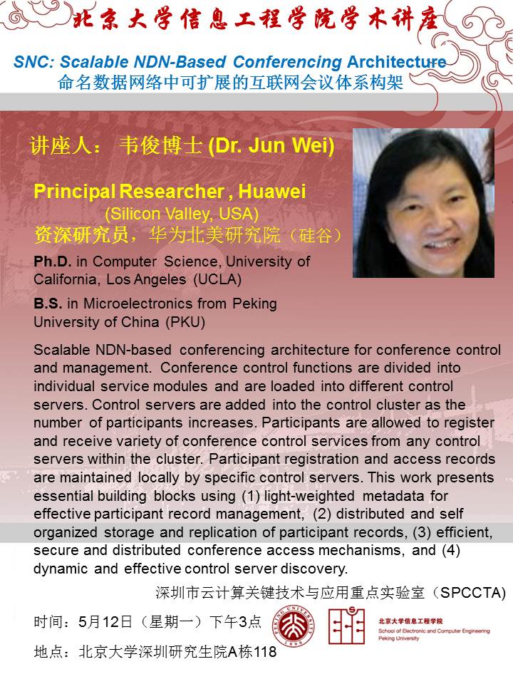【学术讲座】韦俊博士(华为北美):命名数据网络中可扩展的互联网会议体系构架